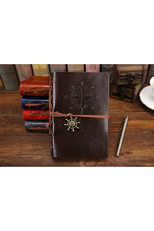 Brown Vintage Sailor Themed Daily Memory Souvenir Travel Agenda Notebook with Leather Cover Antique Retro Gift