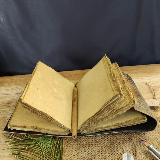 Book of Shadows Large Vintage Leather Journal Grimoire Junk Journal Leather NoteBook SketchBook with Handmade Paper Gifts for Him Her