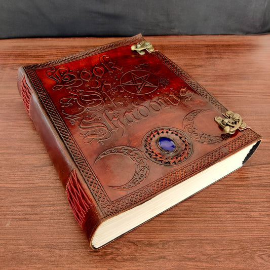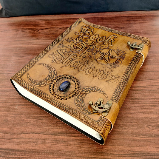 book of shadows - Triple moon third eye stone Leather journal - Blank spell book of shadows, wiccan, book of lovers gifts, gift for him her