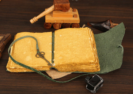 Green garden flower vintage leather Journal gifts blank spell book of shadows antique handmade deckle paper Sketchbook, Christmas Gift