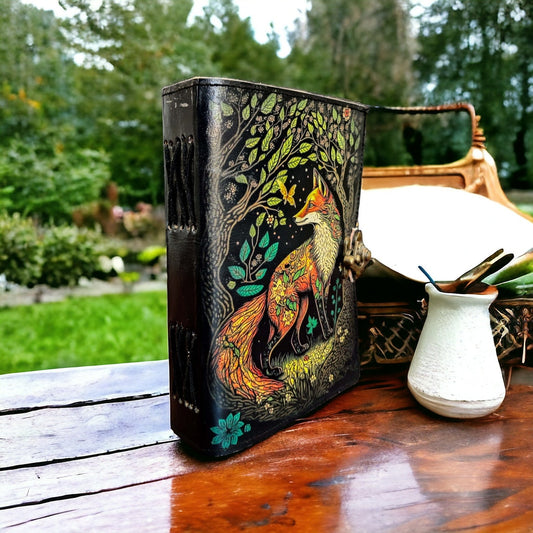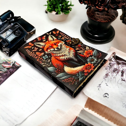 Fox Leather Journal Rustic vintage leather journal Antique Handmade Deckle Edge Paper Book of Shadows, Sketchbook -gift for men and women