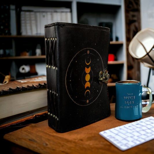 Grimoire Triple moon Goddess vintage leather journal Antique Handmade Deckle Edge Paper Book of Shadows, Sketchbook -gift for men and women