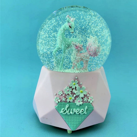 Cute Mother And Baby Deer Large Size Snow Globe With Light & Music Spray
