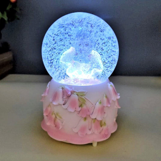 Pink Princess With Angel Wings Lighted Musical Spray Big Size Snow Globe