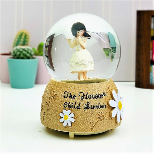 Cute Girl Playing Flute Large Size Snow Globe with Light and Musical Spray