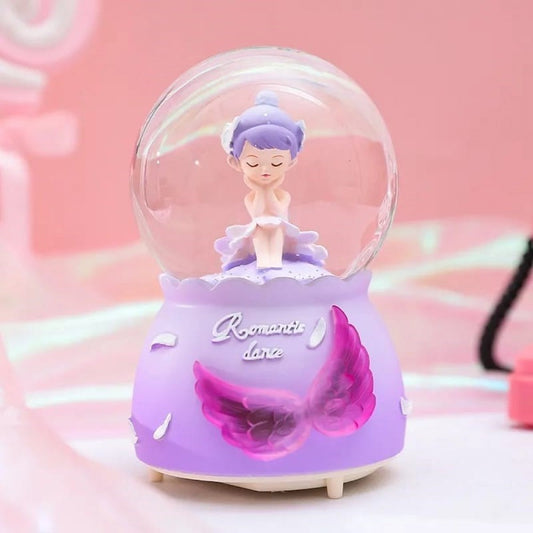 Cute Girl Dreaming Purple Light Musical Spray Big Size Snow Globe