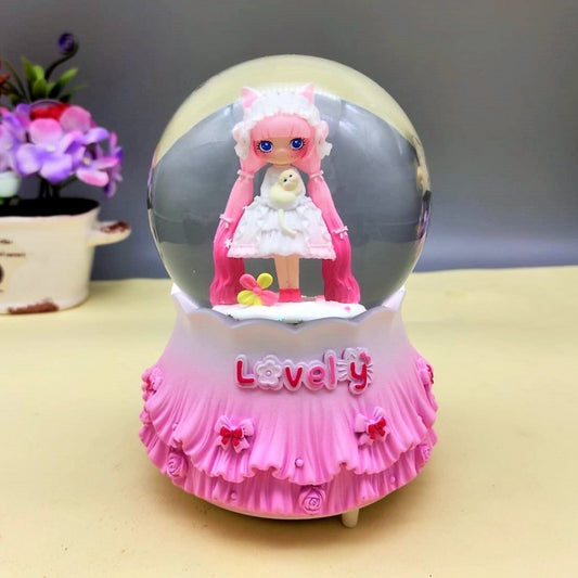 Dreaming Beautiful Girl Lighting Musical Spray Big Size Snow Globe