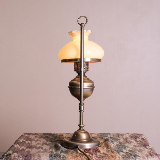 Vintage Lampshade ,green glass lampshade with yellow metal body, Opalin Lamp Vintage