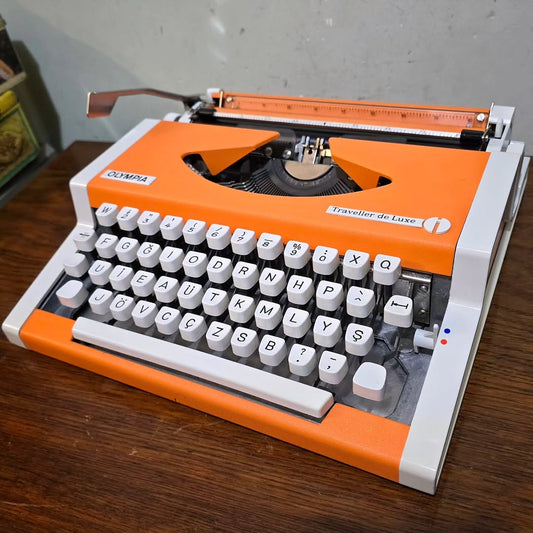1970's Germany Olympia brand Traveler De Luxe model portable popart typewriter